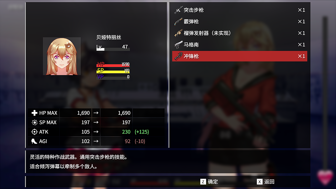 4 unique firearms are available. Weapons can be changed at any time during the battle to change tactics.